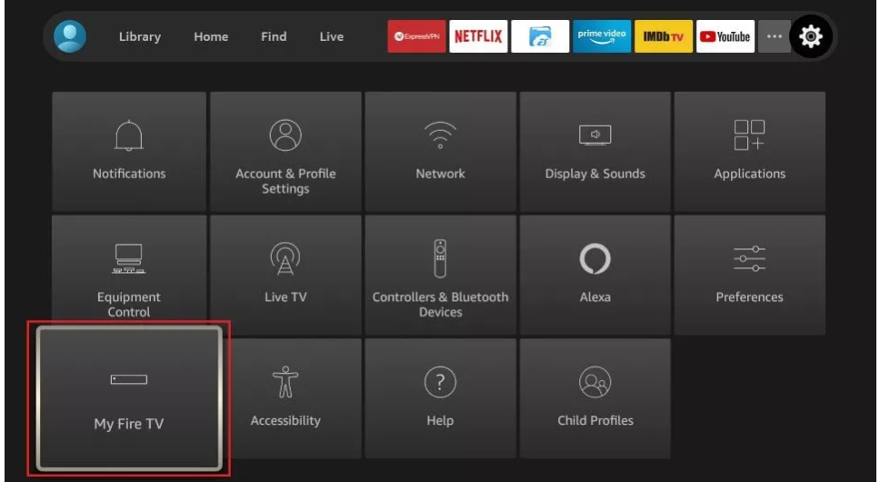 5. Nelle Impostazioni, scegli l’opzione La mia Fire TV