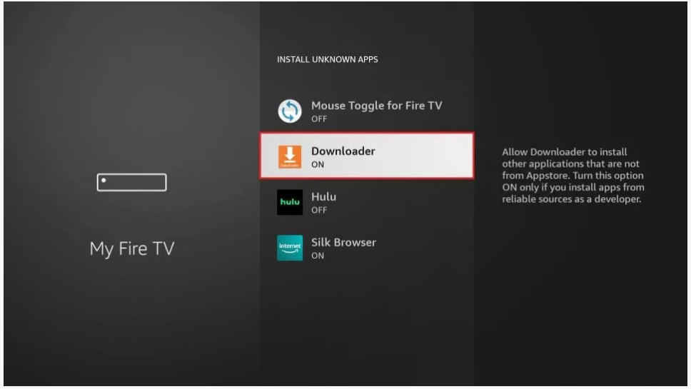 8. Fare clic su Downloader per modificare lo stato su ON