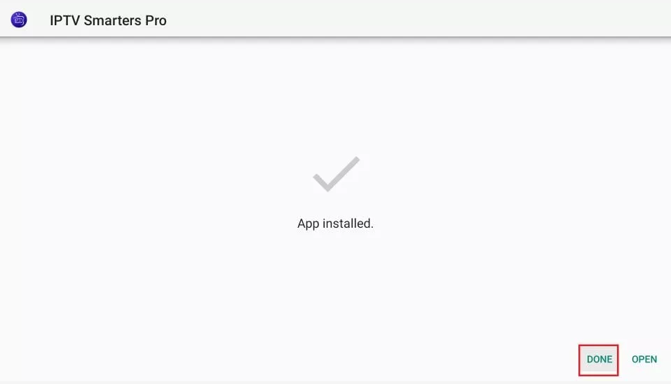 Ora puoi scegliere di fare clic su APRI e iniziare con IPTV Smarters