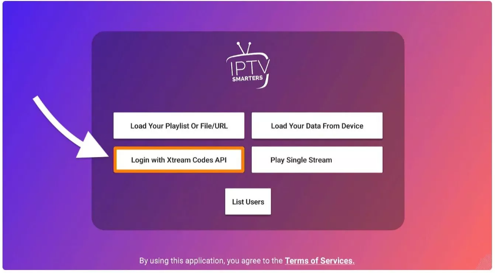 Dalla schermata successiva, noterai più opzioni per accedere a Smarters Pro. Ora devi scegliere Accedi con Xtream Codes API che è il metodo veloce.